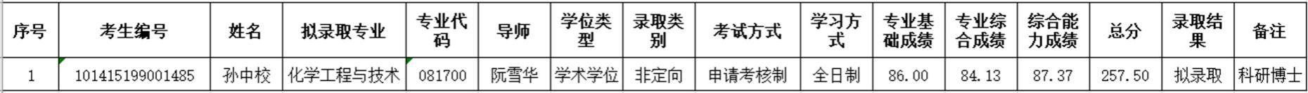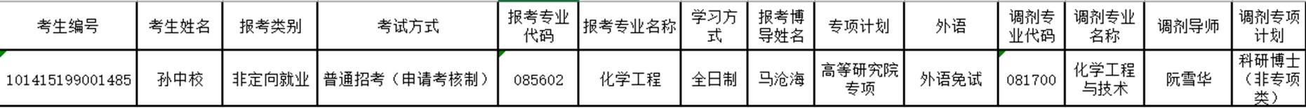 到6月5日15:00点调剂报名时间截止,共有1位考生报名,且满足报名条件。考生调剂报名信息如下: