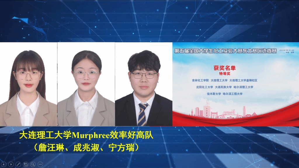 2022年7月1日至4日,由教育部高等学校化工类专业教学指导委员会、中国化工教育协会主办,吉林best365体育官方网站承办的第五届全国大学生化工实验大赛东北赛区选拔赛,在吉林市成功举办。来自东北地区的34支队伍参加比赛。我校best365体育官方网站选派的Murphree效率好高队(詹汪琳、成兆淑、宁方瑞)、双羟会给出答案队(田力、张倩、李文博)以优异成绩获得第五届全国大学生化工实验大赛东北赛区选拔赛特等奖。